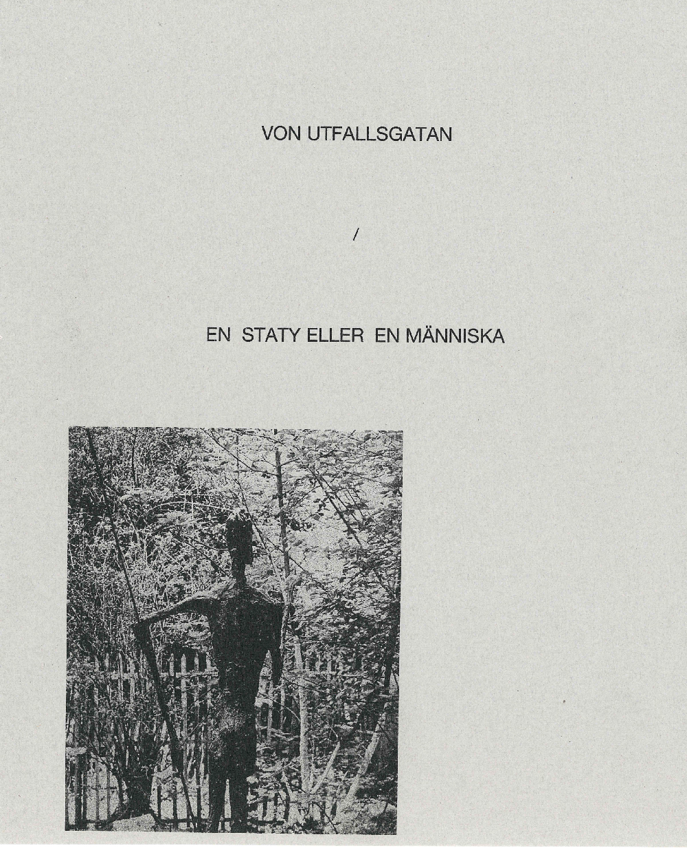 VON UTFALLSGATAN / EN STATY ELLER EN MÄNNISKA. VOL 1